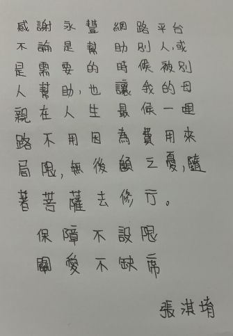 對我來說,永豐平台不僅讓我能安心替母親準備最後一程,也讓我深刻體會到: